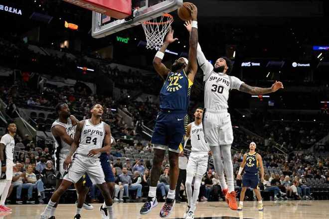 中场休息回来,马刺再度进攻火力升级,他们全场第二次单节轰下35+得分。马刺在73-70领先后,打出一波12-0攻势拉开85-70领先步行者。步行者回敬一波7-0攻势追分,马刺多点开花再度拉开97-81领先16分优势,步行者略有反扑追分,马刺单节35-25净胜10分,三节结束马刺扩大101-88领先步行者。前三节比赛,文班亚马17+12+4帽引领马刺6人得分上双,步行者3人得分上双。