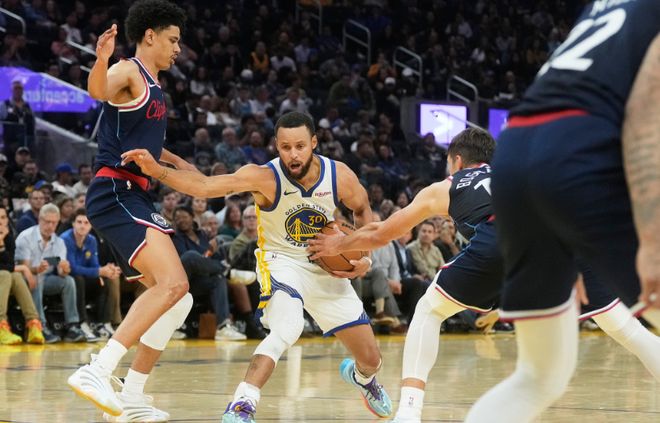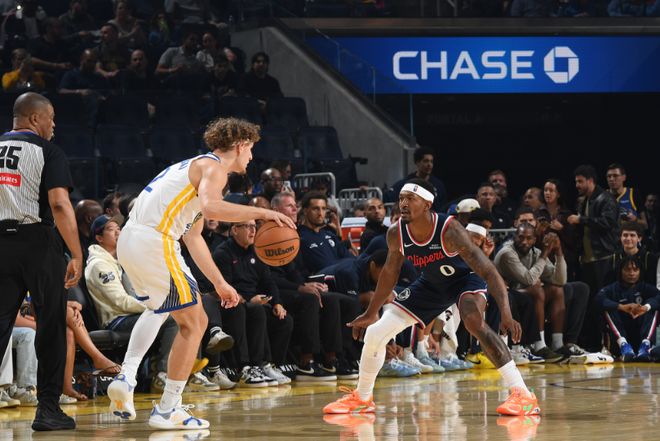勇士本场缺少巴特勒、库明加、穆迪、梅尔顿、小库里,快船轮休哈登、莱昂纳德、保罗、大洛佩兹与巴图姆,比尔迎来加盟快船首秀。