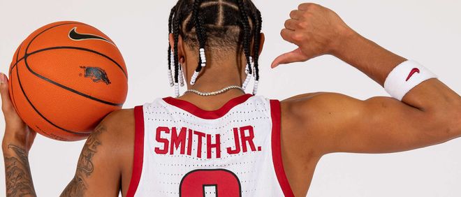 高中毕业时,小尼克史密斯可以说前途一片光明,他也早早拿到包括堪萨斯、北卡、乔治城等众多名校的OFFER,最终他选择了阿肯色大学,现役球员里加福德、穆迪、杰林威、以赛亚乔、博蒂斯也是来自这个学校。