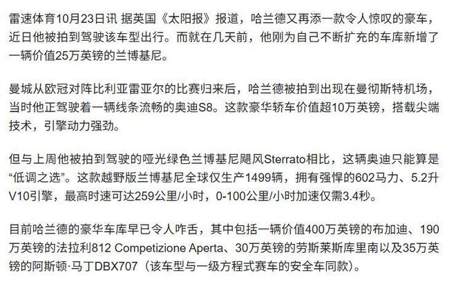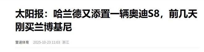 信源来源:雷速体育2025-10-23 太阳报:哈兰德又添置一辆奥迪S8,前几天刚买兰博基尼