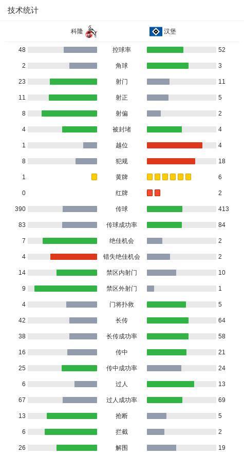 北京时间11月2日,德国足球甲级联赛第9轮,科隆主场迎战汉堡。比赛中,阿赫率先为科隆取得进球,随后凯因茨再下一城,帮助主队扩大领先优势。易边再战,东佩为汉堡扳回一球,一度看到追分希望。此后比赛节奏加快,汉堡球员菲拉伊累计两张黄牌被罚离场,不久后法比奥-维埃拉同样两黄变一红离场,客队陷入人数劣势。补时阶段,卡明斯基送出助攻,赛义德-马拉破门锁定胜局。紧接着,卡明斯基亲自打入一球,将全场比分定格为4比1。最终科隆在主场全取三分。