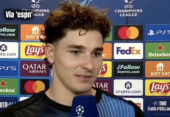 在与法兰克福赛后,马竞前锋阿尔瓦雷斯在接受ESPN采访时被问到关于与巴萨传闻的话题。