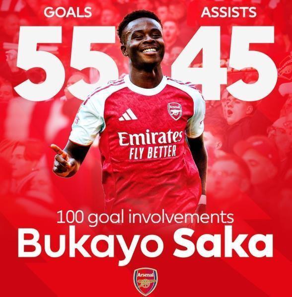 本场比赛,枪手顺利拿下三分的同时,还见证了萨卡职业生涯第200场英超里程碑的辉煌时刻,这位阿森纳自家青训培养出来的英才,已为球队直接参与整整100粒英超进球。